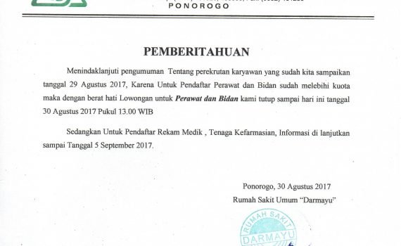 Lowongan Pekerjaan RSU”Darmayu” Kota Madiun