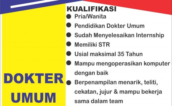 Lowongan Pekerjaan Dokter Umum Persyaratan Laki-laki Fotocopi Ijasah Fotokopi Transkrip Nilai Fotocopi STR Fotocopi KTP…